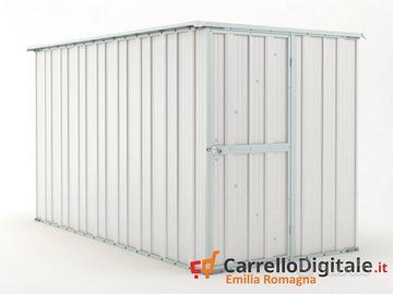 Il box prefabbricato 175 x 307 viene venduto nuovo con garanzia e con fattura o ricevuta fiscale. Viene consegnato all'indirizzo che ci verra' comunicato in kit di montaggio comprensivo di tutta la ferramenta necessaria a montarlo. p>Box garage casetta prefabbricato in lamiera di Acciaio Zincata grecata con Saracinesca NUOVO, perfetto per il giardino usato come capanno per ricovero rimessa attrezzi o come riparo per auto moto, baracca da cantiere o box attrezzi SPEDIZIONE IN TUTTA ITALIA INCLUSA NEL PREZZO * Dimensioni esterne (incluso tetto): 1.75 m (Larghezza) x 3.07 m (Lunghezza) x 1.82 m (Altezza) * Dimensioni esterne (solo perimetro): 1.55 m (Larghezza) x 3.07 m (Lunghezza) x 1.82 m (Altezza Max) * Dimensioni interne: 1.51 m (Larghezza) x 3.03 m (Lunghezza) x 1.80 m (Altezza Max) * Altezza della parete: 1.80 m * Dimensioni porta anteriore: 0.73 m (Larghezza) x 1,78 m (Altezza) * Metri quadri: 5.4 * Peso struttura: 95 kg * Spessore pannelli: 0,32 mm * Spessore profili: 0,70 mm Telefono/Whatsapp: A soli 443 euro IVA, spedizione ed assicurazione sulla spedizione inclusi nel prezzo. Possibilita' di acquisto con pagamento alla consegna (SOLO CONTANTI no assegni) Attenzione, il metallo utilizzato non e' ferro o alluminio ma acciaio zincato. Il box in acciao in questione non e' coibentato (pannelli sandwich) ma puo' essere modificato facilmente e con una spesa minima. La casetta da esterno e' composta da profili e pannelli in acciaio zingato e verniciato in maniera da poter resistere alle intemperie. A differenza di quelli in legno i box in lamiera zincata non necessitano di nessuna manutenzione Telefono/Whatsapp: