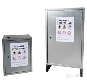 l'armadietto per fitofarmaci di nostra produzione, rispondente a tutte le caratteristiche richieste dalla normativa di riferimento (materiale ignifugo lavabile, prese d'aria, vaschette di contenimento, chiusura a chiavi, segnalazione di pericolo etc. etc.) viene fornito completo di Certificazione e Dichiarazione di conformità ai seguenti prezzi: