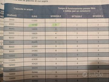 Vendo depuratore a sabbia Intex modello SF80220-2, ideale per piscine fuori terra. Acquistato a maggio 2020, utilizzato solo nei mesi estivi (luglio e agosto) e sempre conservato al coperto durante l’inverno. Il prodotto è in ottime condizioni, perfettamente funzionante e ben tenuto. Portata adatta a piscine di medie dimensioni (da 11.000 litri d'acqua allego tabella di funzionamento litri/ore), garantisce un’ottima filtrazione dell’acqua rispetto ai classici filtri a cartuccia. Ritiro a mano (preferibile) oppure spedizione a carico dell’acquirente.