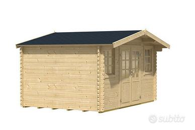 Casetta blockhouse solida, spaziosa ed elegante, ideale come ricovero attrezzi,perfetta per biciclette attrezzi da giardino, ottima copertura.