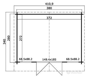 Proiezione in pianta (tetto compreso) 410x340 cm