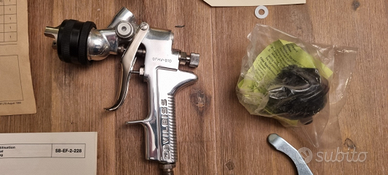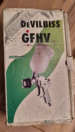 DeVilbiss GFHV-510, pistola a spruzzo professionale HV. 🔹 Condizione: NUOVA – mai utilizzata 🔹 Scatola aperta solo per verifica contenuto 🔹 Perfettamente conservata Modello professionale molto apprezzato in carrozzeria e verniciatura industriale per: ✔ Atomizzazione fine e uniforme ✔ Alta qualità costruttiva ✔ Regolazioni precise (ventaglio, flusso, aria) ✔ Ottima ergonomia e bilanciamento Specifiche tecniche Modello: GFHV-510 Tecnologia: HV (High Volume) Alimentazione: a gravità Utilizzo: basi, trasparenti, smalti professionali Regolazioni complete professionali