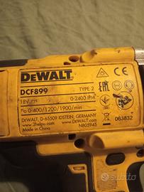 Avvitatore a percussione Dewalt DCF899, buone condizioni generali e perfettamente funzionante. Prezzo COMPRENSIVO di spedizione. Vendo SOLO CORPO, senza batteria e caricabatterie. 950nm in avvitamento e 1625nm max in svitamento, 2400 impatti al minuto 3 velocità regolabili, attacco quadro 1/2 pollice.