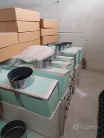 Vendesi 8 unità diffusori professionali per aria condizionata piatti e ribassati completi di canalizzazioni e diffusori circolari bianchi.