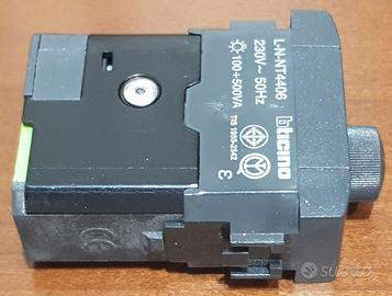 Dimmer a manopola, praticamente nuovo come visibile in foto, sostituito solo per passaggio a lampade LED. Gestisce carichi resistivi Max. 500 W, 1 Modulo, 230Vac, LED centrale rosso per segnalazione luminosa. Adatto per serie Living International e Livinglight. Disponibili 2 pezzi. RITIRO SOLO A MANO zona Busto Arsizio o limitrofi. No perditempo.