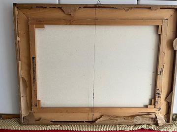 Quadro con dipinto su tela di un tratto di fiume nel mezzo di alberi di acacie. Le misure della tela dipinta sono di larghezza cm. 70 e altezza cm. 50. Le misure della cornice del quadro larghezza cm. 84 e altezza cm 64