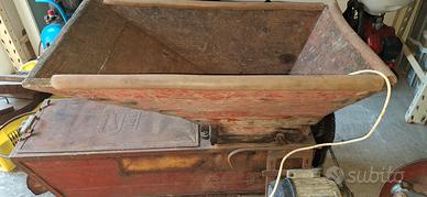 antica diraspatrice a carretto di circa 200 anni in legno e ferro in ottime condizioni no tarlo , modificata con l aggiunta di motore e perfettamente funzionante. ideale per arredo in vecchie cantine o per il suo reale uso poiché perfettamente funzionante