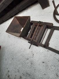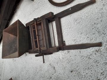 Vendo affascinante diraspatrice in legno risalente ai primi del '900, perfettamente conservata e sempre custodita al chiuso. L'oggetto si presenta in uno stato eccellente, ideale per esposizione o come pezzo da collezione. Questo pezzo è particolarmente adatto per l'esposizione in cantine, agriturismi o spazi dedicati al mondo del vino. La macchina è completa di tutti i suoi componenti originali.