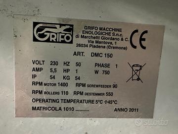 Grazie a un potente motore elettrico montato sulla macchina, tutti i meccanismi si attivano: dai rulli per la pigiatura alla coclea superiore fino ad arrivare all’albero diraspatore, che grazie alla griglia in acciaio inox separa l’acino dal raspo. Meccanismi quali rulli e ingranaggi sono fabbricati in nylon, sia per garantire un corretto mantenimento delle sostanze alimentari, sia per garantire robustezza e lunga durata del prodotto.