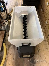 Diraspatrice modello vasca e pompa apribile che consente una produzione oraria di circa 2.000 Kg/h. È interamente costruita in acciaio smaltato e grazie all’ampia vasca di carico permette una facile operazione di rovesciamento delle casse. Tramite l’albero di diraspatura e una griglia in acciaio Inox l’acino viene separato dal raspo; il mosto viene successivamente pompato verso la botte attraverso una pompa in acciaio Inox.