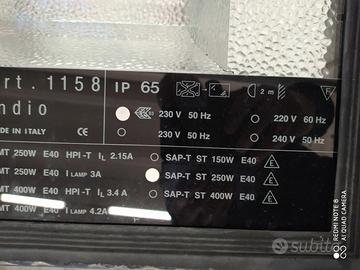 Vendo n.4 proiettori da esterno marca Disano mod. INDIO art. 1158 con lampada al sodio a 230Vac, 2 da 250W e 2 da 150W, usati ma perfettamente funzionanti, causa scarso utilizzo.