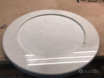 Dischi in marmo bianco 43cm di diametro esterno x 3 cm di spessore tutti con la stessa lavorazione ideali per creare tavolini o essere ripresi in macchina per ulteriori lavorazioni.Ho disponibili 16 unitá al prezzo di 70€ cad se si compra tutto il pacco il prezzo è di €50 cad