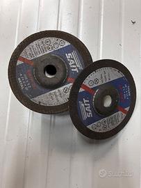 9pz Disco abrasivo da taglio per metallo, specificamente un modello Sait Premium DT A 24 R. È una mola abrasiva resinioide rinforzata a centro depresso, progettata per il taglio di metalli e materiali ferrosi. Le sue dimensioni sono: diametro di 150 mm e spessore di3,2 mm. La grana abrasiva è A24R, adatta per un'efficace rimozione del materiale. È certificato secondo le norme UNI EN ISO 9001 e testato secondo EN 12413. La velocità massima consentita è di 10200rpm 80m/s. È un prodotto fabbricato in Italia.
