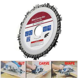 Dischi 115x22mm CON CATENA MOTOSEGA, Ideale per trasformare la vostra smerigliatrice in un pratico motosega per rami. Ideale per legno pressato e laccato o anche per fresare e scanalare il legno.Misura: 115x22mmRPM 10000-13000Ideale per smerigliatrici 4-1/2"