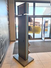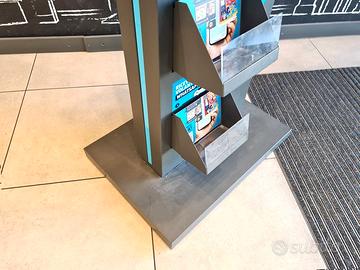 display pubblicitario per supermercati usato, si tratta di un totem pubblicitario di volantini utilizzato per mettere in evidenza prodotti e promozioni all’interno di negozi e supermercati. dimensioni: 78X56cm h226cm