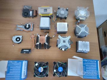 Vendo lotto di 15 dissipatore dissipatori alluminio radiatore ventola ventole per cpu vari socket processore portatile computer notebook fisso, per processori di marca intel amd. Di cui 2 pz per intel per core i7 lga1150 4790s nuovi con scatola. Vendo in blocco a 55 euro