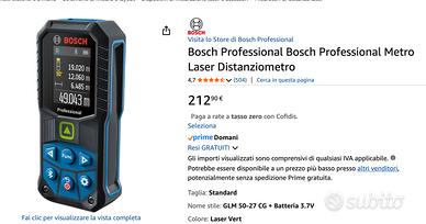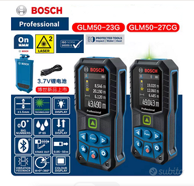 Bosch Professional Distanziometro laser GLM 50-27 C + Batteria 3.7V . Precisione ±1,5 mm, Tecnologia laser verde, Display retroilluminato, Cifre grandi, Protezione IP 65 (Acqua e polvere), Rotazione automatica del display, Connessione Bluetooth, Funzione tracciamento, Portata 0,05 – 50 m, Feedback tramite vibrazione, Inclinometro a 360°, Display a colori. Nuovo mai usato ,ancora scatolato .
