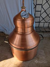 Vendo splendido distillatore artigianale La Ramera, marchio leader nella lavorazione del rame. Il modello ha una capacità di 30 litri ed è la versione classica con raffreddamento a serpentina. L'oggetto è stato usato solo 2 volte, è in condizioni estetiche e funzionali eccellenti . È perfetto per la produzione di acquaviti, grappe o oli essenziali grazie all’ottima conduzione termica del rame.