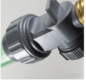Il dispenser di sapone UNGER HiFlo è la soluzione pratica per i parabrezza molto sporchi. Mescola il sapone all'acqua pulita ed è facile da riempire. Può essere collegato a qualsiasi tubo da giardino standard.