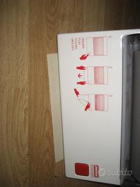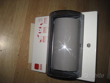 vendo porta salviette ,marca visiopaper , distributore asciugamani in rotolo ,con rotolo incorporato , con pulsante a molla ed erogazione carta , a strappo misurato, fissaggio a parete sospeso,misure alt. cm 35 x cm 19 di prof.tà , larg. cm 30 nuovo mai usato vendo 25 ,00 scontato