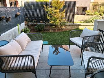 Vendesi divanetti e tavolino per esterni. Due anni di vita, sempre tenuti sotto una pergola.
