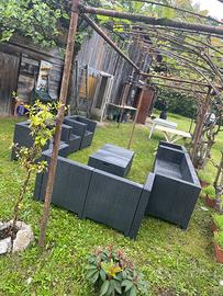 Set da giardino composto da Divano 3 posti 2 Poltrone 1 tavolino. Color Antracite ,. Vendo causa inutilizzo 160 euro a set. Disponibili 2 set