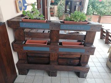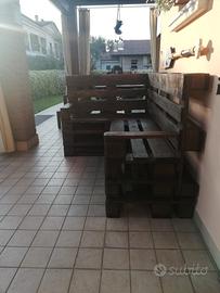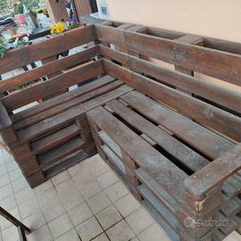 Vendo causa cambio arredamento, divanetto ad angolo fatto artigianalmente con bancali "EPAL" color rovere scuro, divisibile in due pezzi per comodità di trasporto.