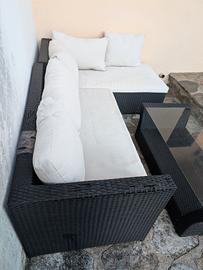 Vendo divanetto da esterno in rattan composto da due moduli e tavolino coordinato.