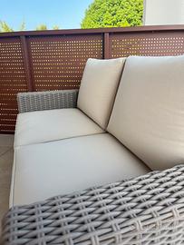 Vendo divanetto a 2 posti da giardino o terrazzo con cuscini appena fatti su misura da Miatto Tendaggi (cuscini pagati 400€)