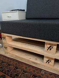 Divanetto in pallet EPAL misure 120x80 con cuscini impermeabili, adatto anche per uso in esterno.