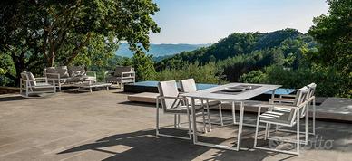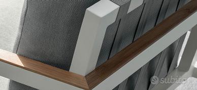 Sedute e schienali sono supportati da cinghie elastiche sintetiche coordinate al colore della struttura cuscineria in tessuto per esterni