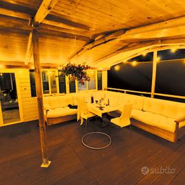 divano angolare per ( giardino, terrazzo etc) base euro pallet nuovi con cuscini impermeabili, dimensioni 4.00x3.00 modificabile.