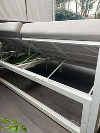 Divano letto con un materasso per seduta con schienale reclinabile che offrono un comfort durante il riposo. struttura in alluminio robusta e resistente; ha una finitura verniciata a polvere che ne garantisce la resistenza alle diverse condizioni atmosferiche. Tessuto è impermeabile e antimacchia. Buone condizioni; vendo per poco utilizzo. Solo ritiro in loco zona milano nord