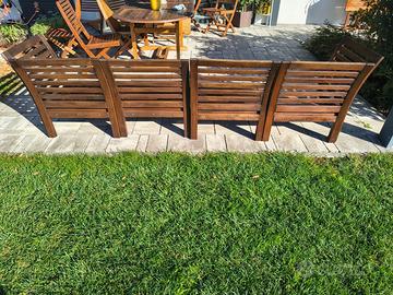 Per cambio abitazione, vendo divano in legno in tinta noce, molto bello per arredo giardino in porticato o pergola. Il divano è componibile, i cuscini in tinta “ecru”, sono sfoderabili in tessuto impermeabile e di ottima fattura.