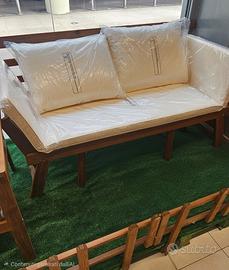 Divano Giardino in Acacia Massello CUSCINONI ecru