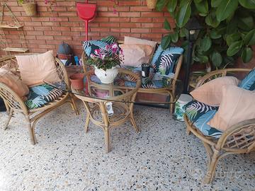 Divano completo + tavolino in vimini da esterno in buone condizioni, come in foto.