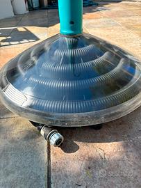 La base/serbatoio, sviluppata in senso orizzontale, offre un'esposizione migliore ai raggi solari, rispetto ai modelli con sviluppo verticale: ciò si traduce con un maggiore rendimento termico ed una maggiore velocità nelle fasi di riscaldamento durante la giornata. Facile da trasportare, una volta riempita è stabile e sicura, anche grazie al regolatore di pressione inlet con valvola di sicurezza.