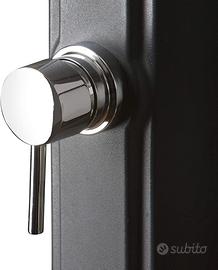 Doccia solare in resina con un deposito da 25 l Finiture in color nero con un design elegante per il suo giardino Con un diffusore anticalcare e un miscelatore per controllare la temperatura e la forza dell’acqua Include un rubinetto lavapiedi Installazione senza complicazioni