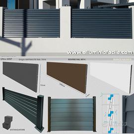 Doga profilo in alluminio per recinzioni , steccati , staccionate , frangivento , frangisole , frangivista , pavimenti , rivestimenti con tutto il necessario.