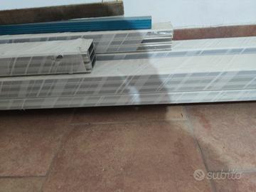 Doghe di misura variabile in alluminio e color bianco con effetto legno. La lunghezza è variabile e il prezzo è al metro lineare. Adatte per diversi usi, sono sovrapponibili.