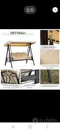 dondolo da giardino con tettuccio regolabile ferro verniciato a polvere cuscini compresi