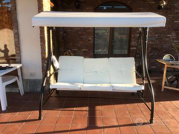 Dondolo da Giardino VIVAGARDEN OUTSUNNY, 3 Posti in Metallo e Poliestere con Tetto Regolabile 185x125x173 cm colore Crema - 84A031.