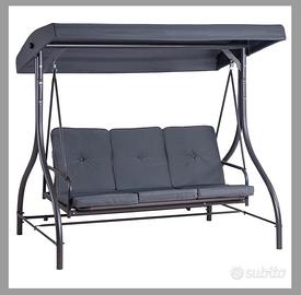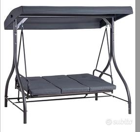 Vendo Dondolo da giardino, Mai usato per mancanza di spazio. Colore grigio, con cuscini imbottiti. Dondolo Altalena Enrico Coveri Letto 3 Posti Con Tetto Parasole Regolabile, Struttura In Acciaio E Tessuto Impermeabile. Misure Dondolo 3 posti, Larghezza: 195 Cm, Profondità: 120 Altezza: 175 Cm. Seduta: 150 x 50 x 50 Cm. Misure Letto: 105 x 150 Cm. Materiale della Struttura: Tubolari di acciaio inox, rivestimento Tessuto Poliestere idrorepellente. Vendo 90 euro, Ritiro a Fagnano Olona (VA)
