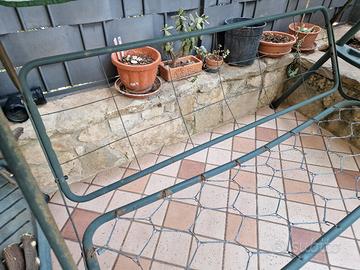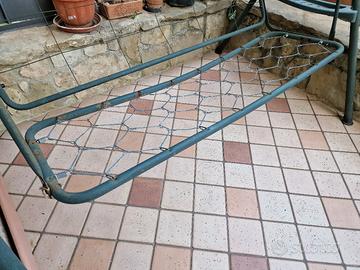Dondolo tre posti della nota marca Grand Soleil, struttura in metallo, con due comodi porta oggetti, porta bibita ai lati. Il dondolo di colore verde scuro ha la seduta di cm. 140, La larghezza totale è di cm. 185. Il cuscino di seduta, lo schienale ed il tettuccio sono stati recentemente sostituiti.