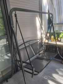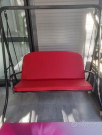 Dondolo da giardino/ terrazzo , 2 posti , colore nero, cuscini rossi rifoderati , senza tettuccio Misure: 140 lunghezza 105 seduta 100 piede CONSEGNA A MANO NO SPEDIZIONE
