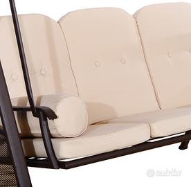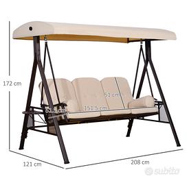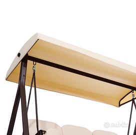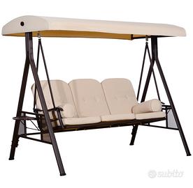 Outsunny Dondolo 3 Posti con Tetto Regolabile, Portabicchieri e Cuscini, in Metallo e Poliestere, 208x121x172 cm, Beige