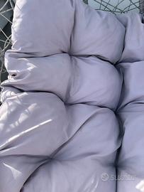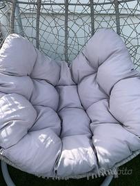 Vendo questo bellissimo dondolo sospeso in rattan con cuscino imbottito, ideale per creare un angolo di relax in giardino, terrazzo o anche in casa. Il design elegante e la struttura resistente lo rendono perfetto per chi cerca comfort e stile.
