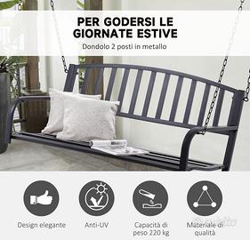 Dondolo Sospeso da Giardino con 2 Posti, Romantica Panchina in Metallo Nero per Esterni, 127 x 60 x 47 cm