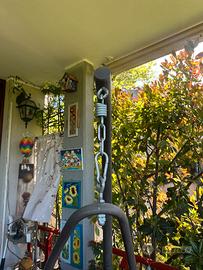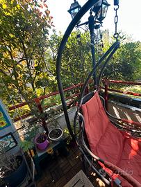 Elegante struttura in ferro, con seduta comoda e schienale leggermente arcuato, sospesa su catene robuste. È perfetto per un giardino rigoglioso, posizionato sotto un pergolato o vicino a un’aiuola di fiori. Può creare un angolo di relax e pace, ideale anche per un terrazzo ampio, magari accompagnato da cuscini colorati. Visto e piaciuto! Consegna a mano.