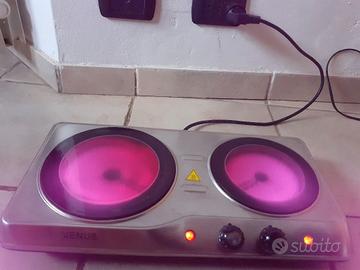 Piano cottura / Fornello elettrico portatile professionale a 2 piastre / fornelletti in VETRO CERAMICA e ACCIAIO.